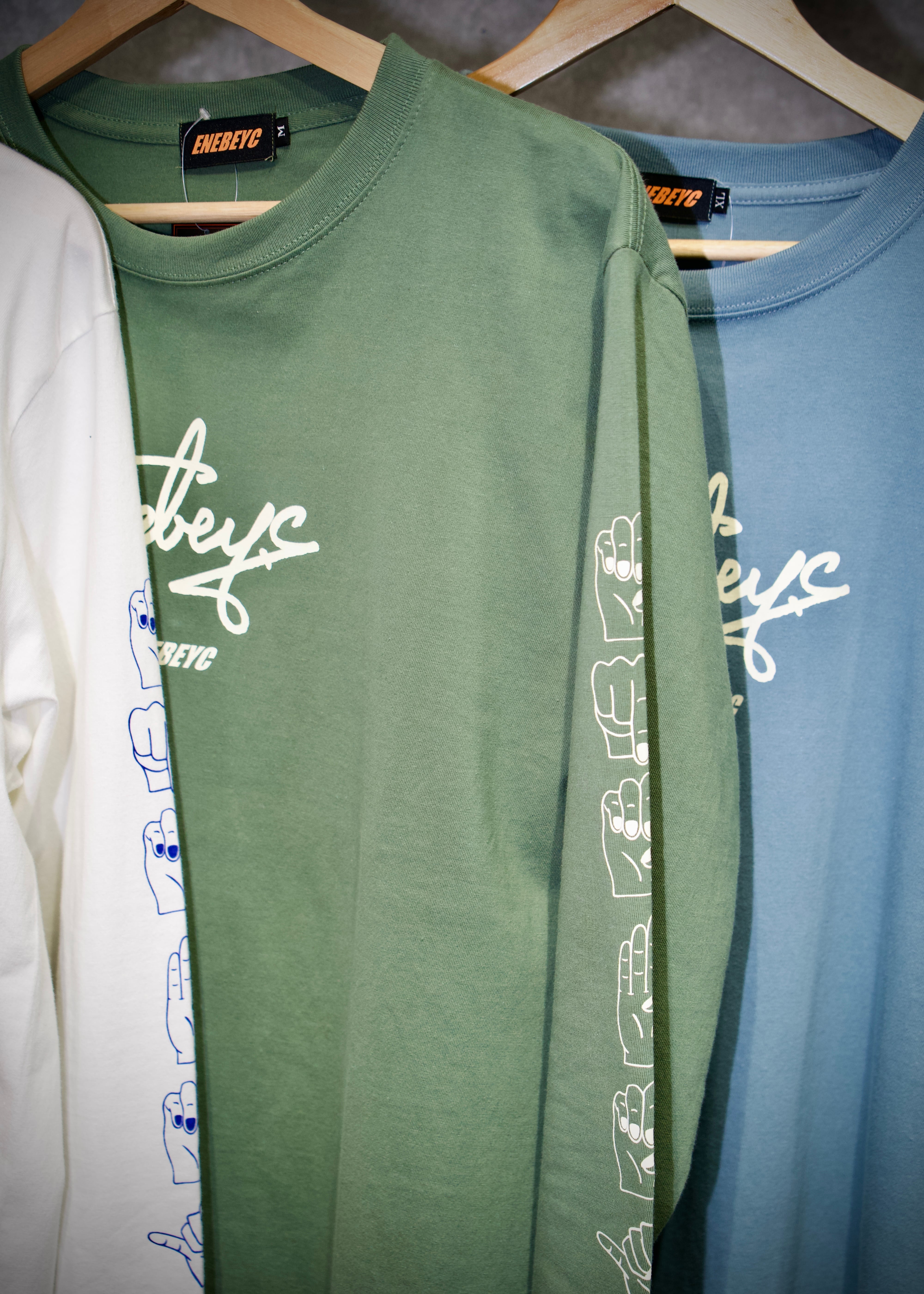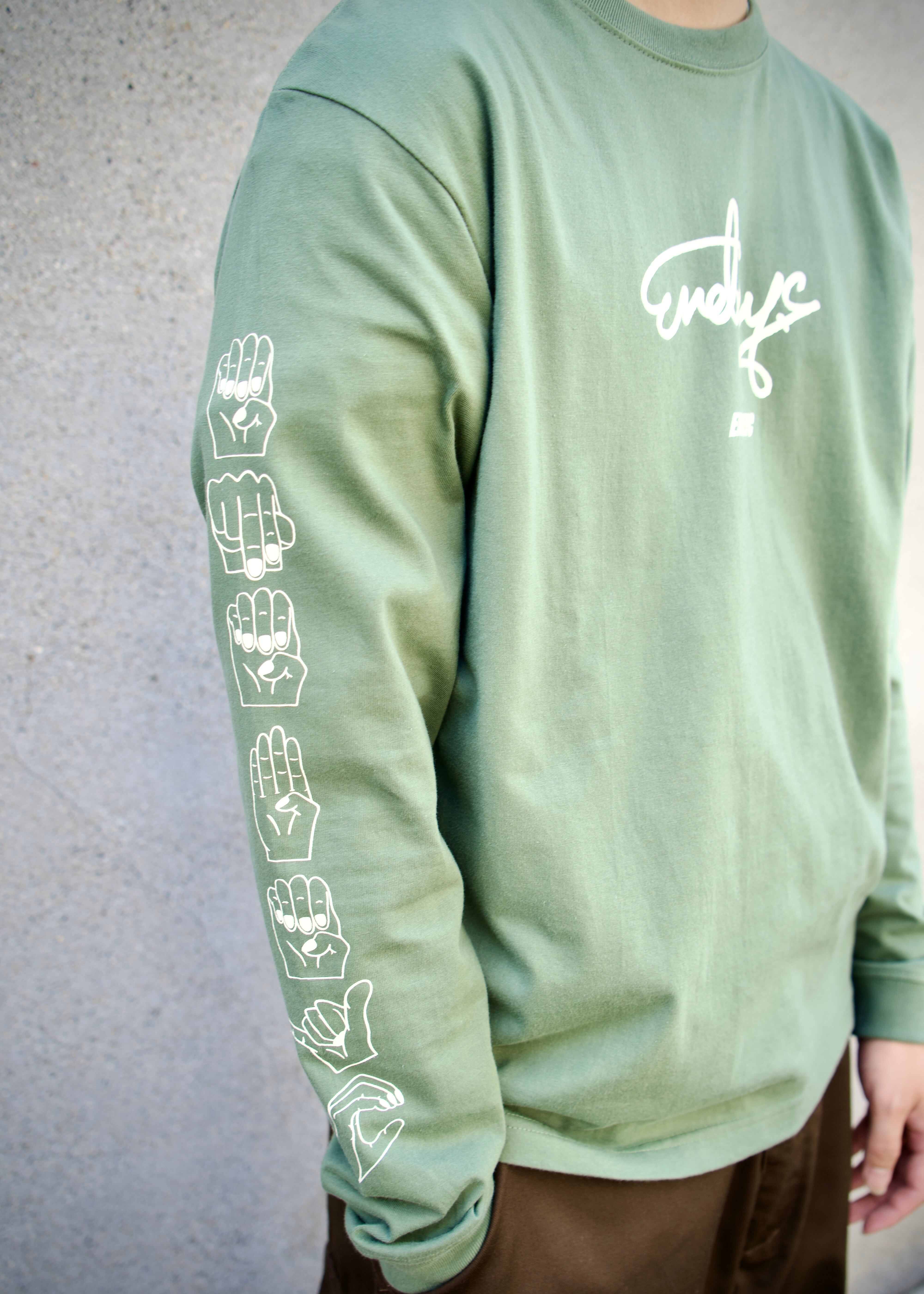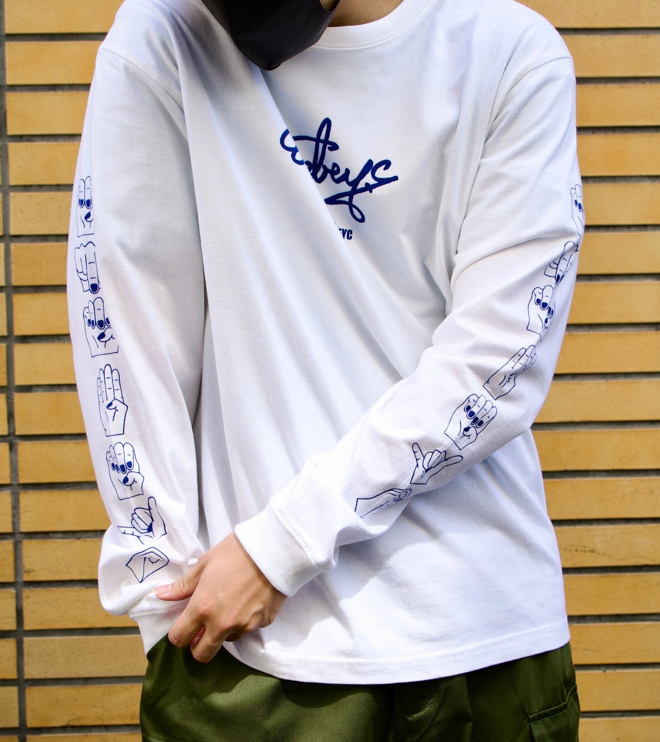 ベストと合わせて両袖の手話プリントを見せるコーデもおすすめ!