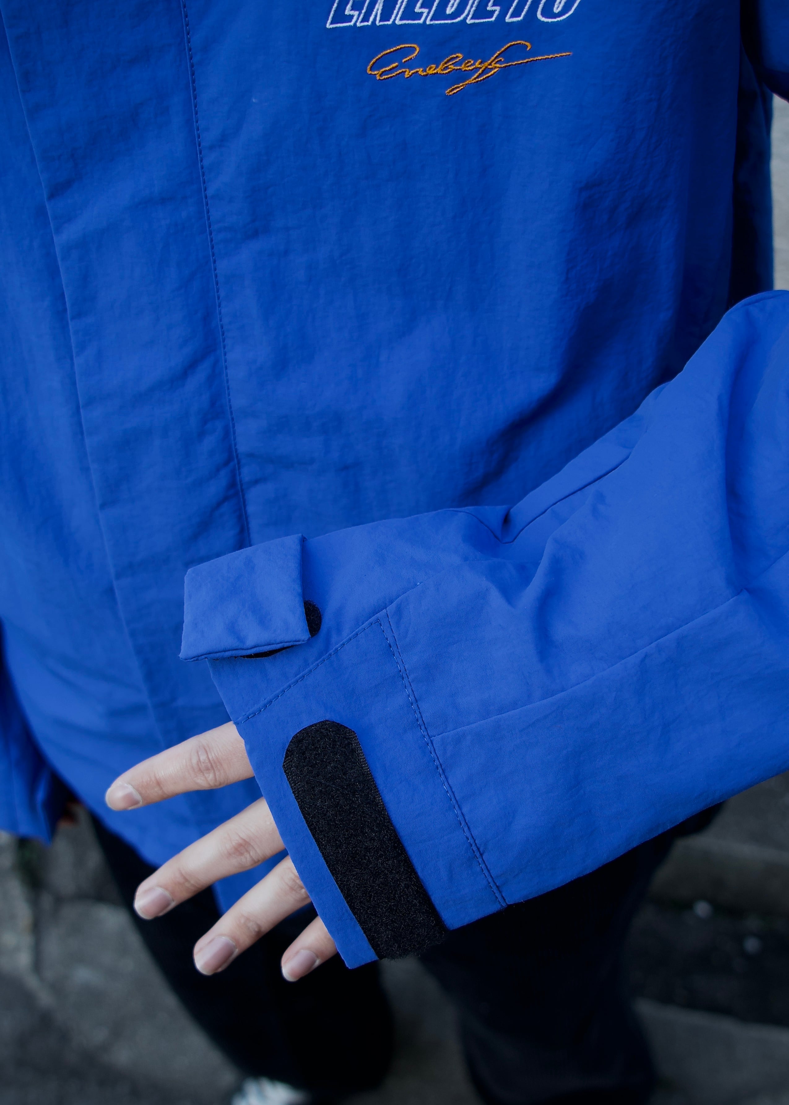 フロントジップ部分にも風防がついておりますので、マジックテープで閉めて風の侵入を抑えられます。