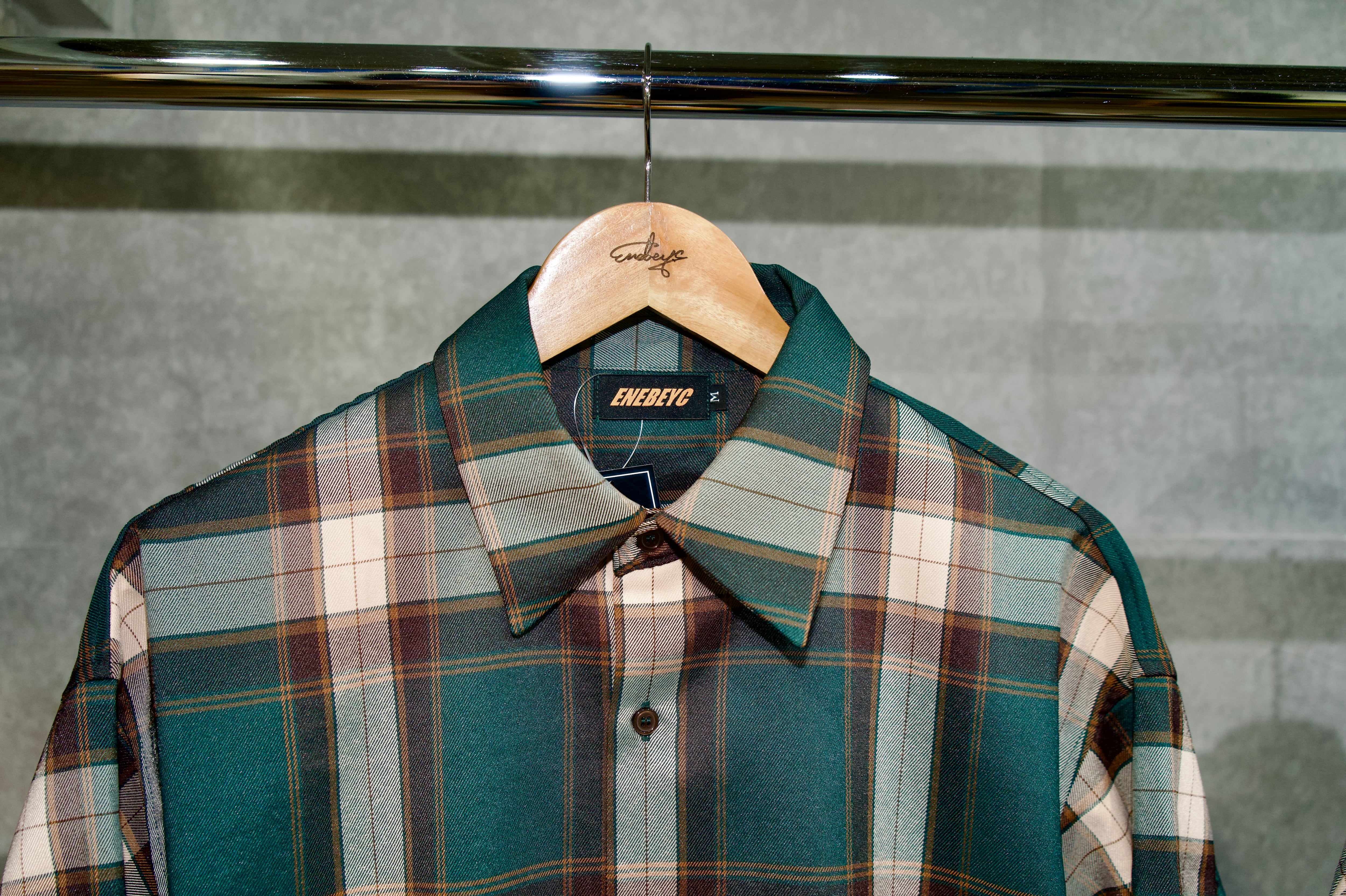 フロント部分のチェック柄は左右対称になるよう設計しており、