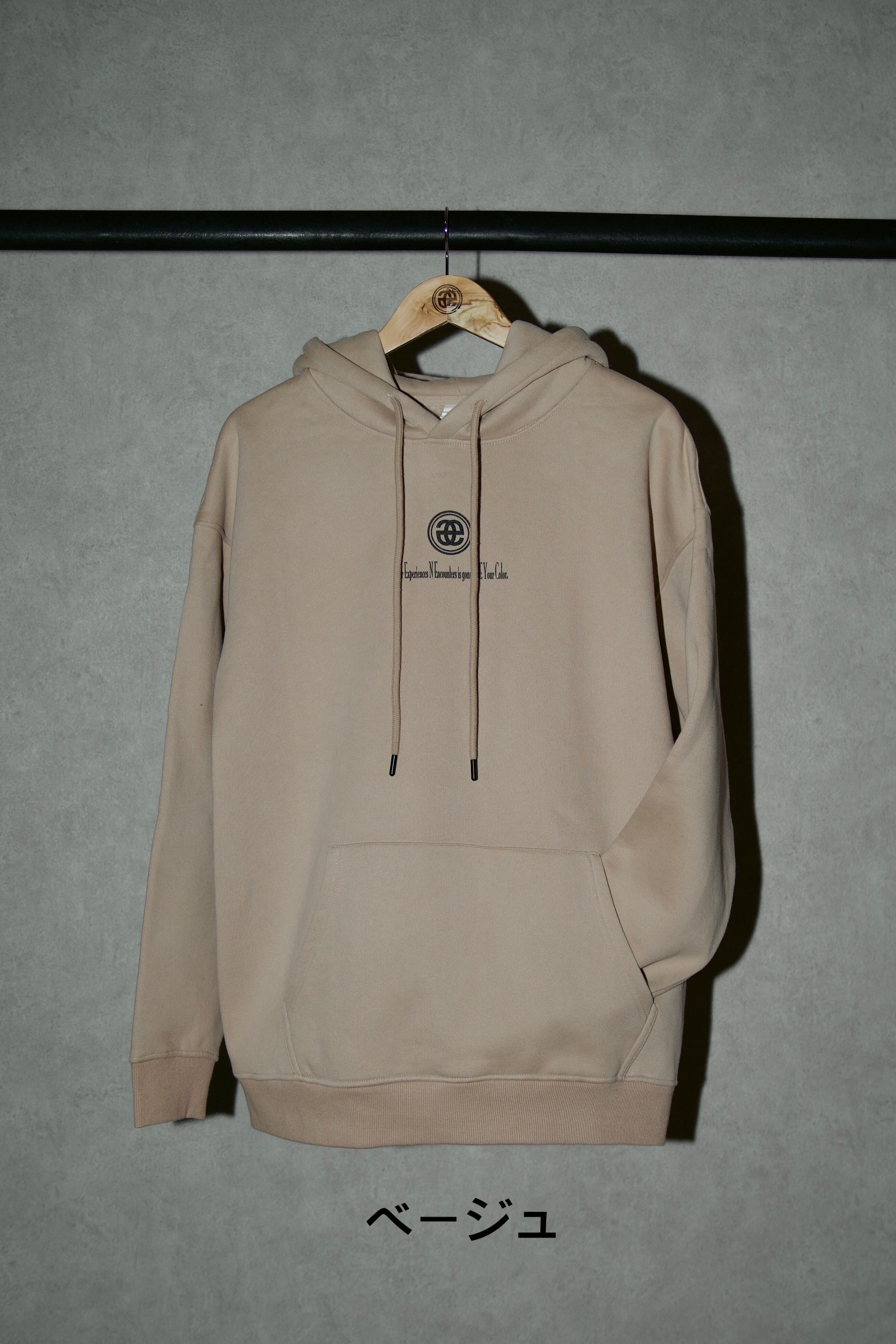 フードにはLOGOのプリント(シート)、バック右下には