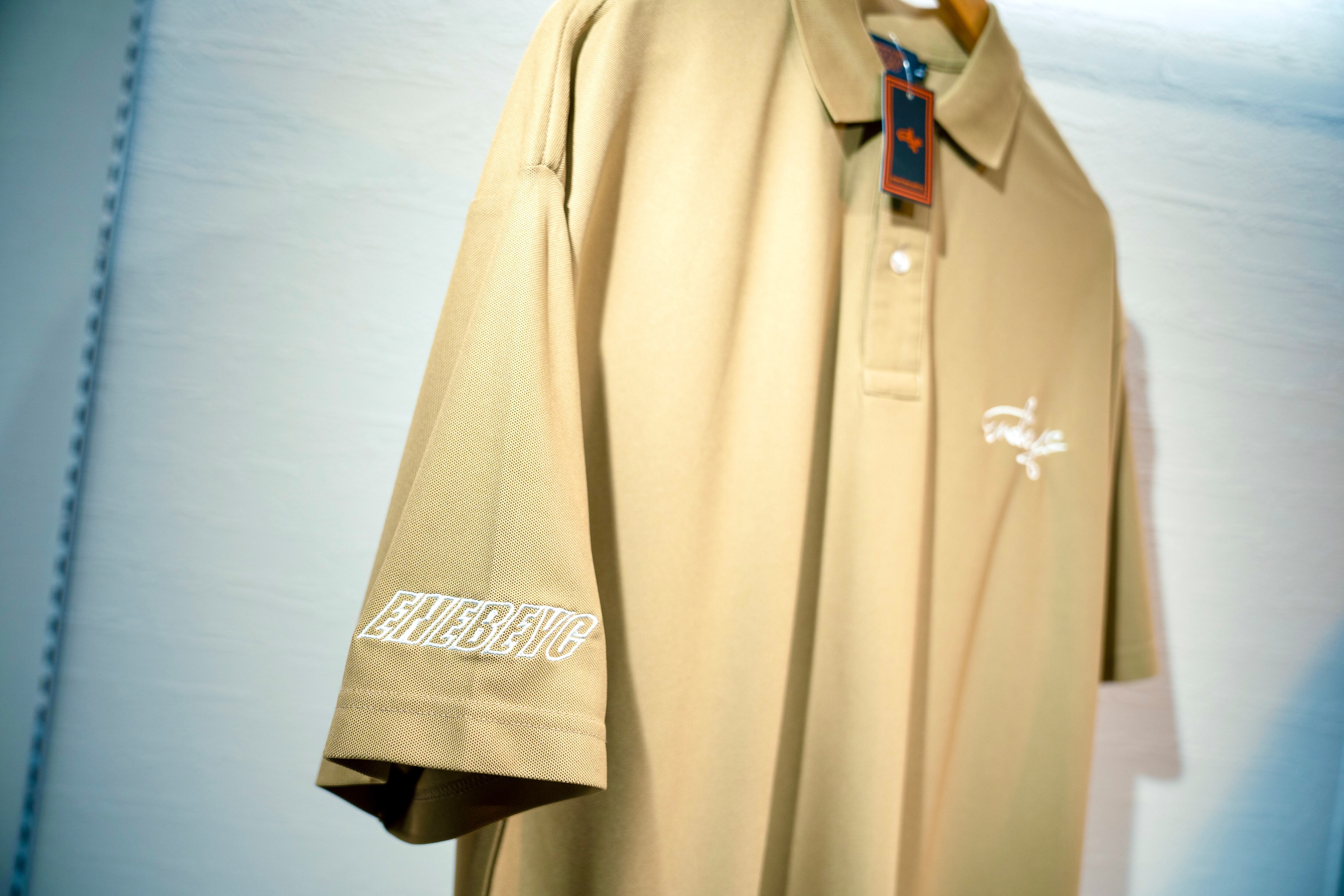 右肩の中抜きブロックLOGO刺繍は